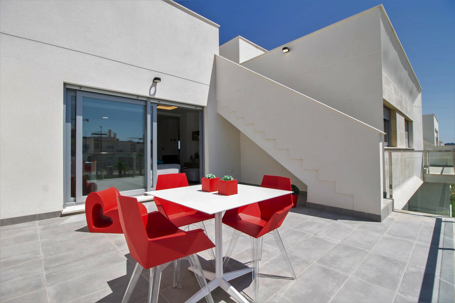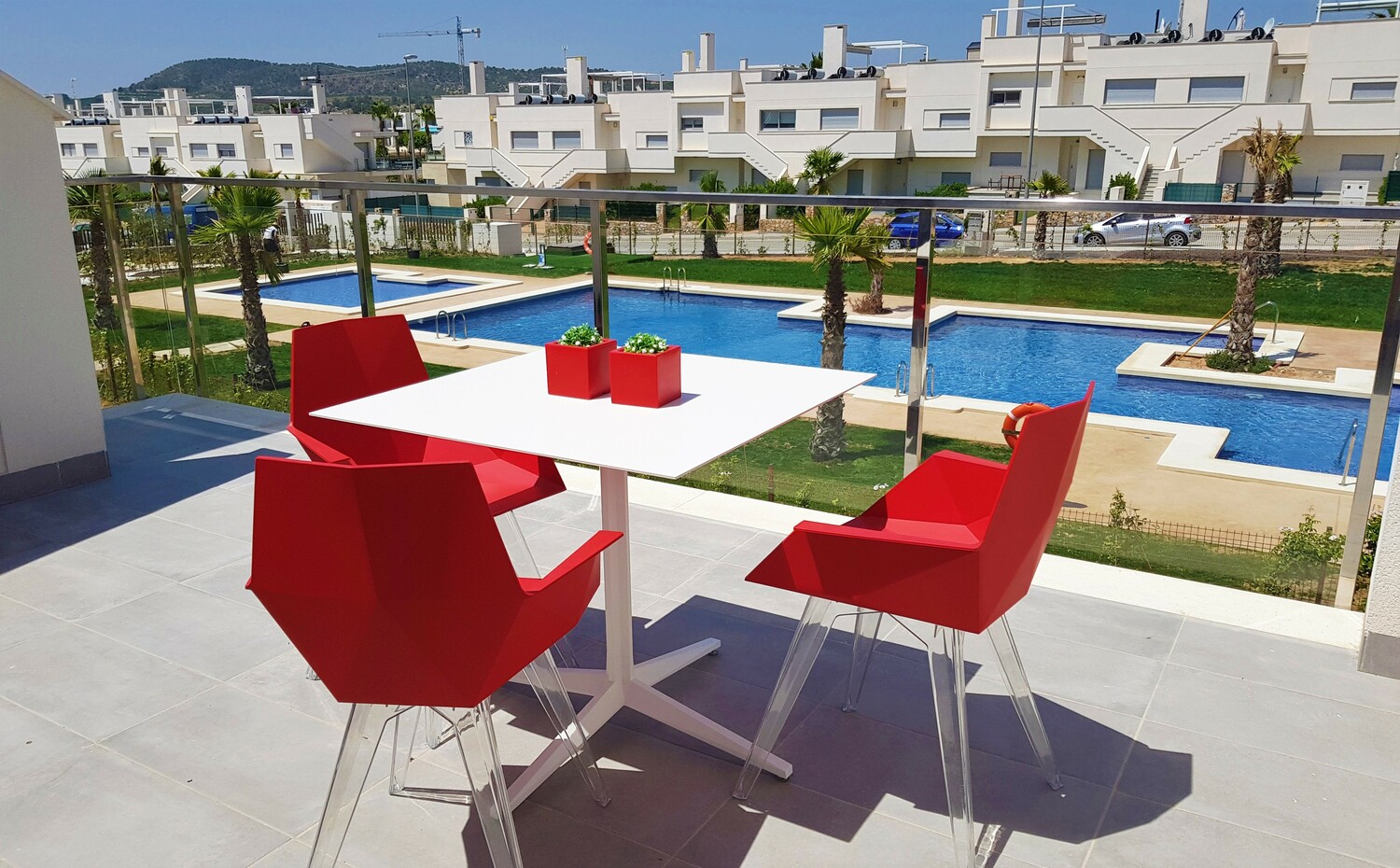 De penthouses, geschikt voor zowel permanente bewoning als verhuur, zijn verkrijgbaar met 2 of 3 slaapkamers. De master bedroom heeft een en-suite badkamer. De woonkamer heeft, door de ligging, een schitterende lichtinval. Er is een mooi uitzicht op de eigen tuin en de fraai aangelegde binnentuin. Het solarium is een heerlijk privé zonneterras.